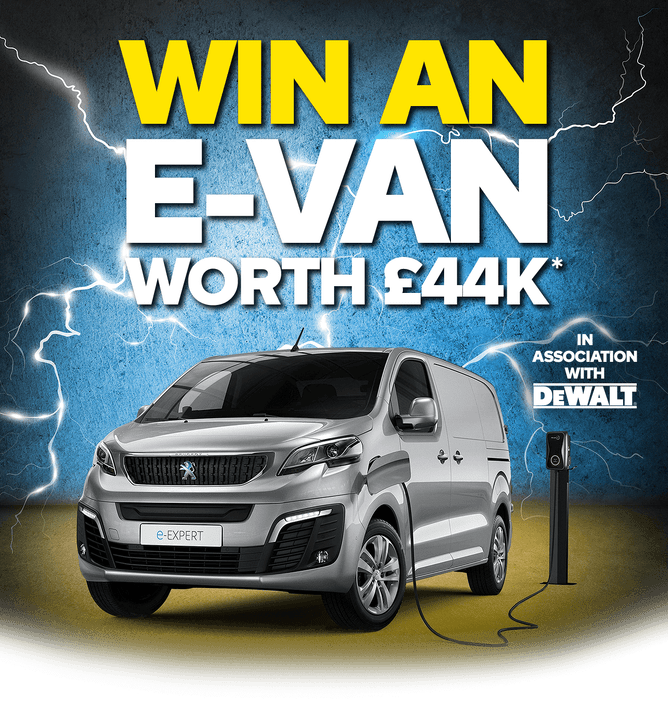 We're giving away four Peugeot e-Expert electric vans. This October we're giving away a Peugeot e-Expert electric van in association with DeWalt, and you could be in with the chance to win one, plus the charging point.