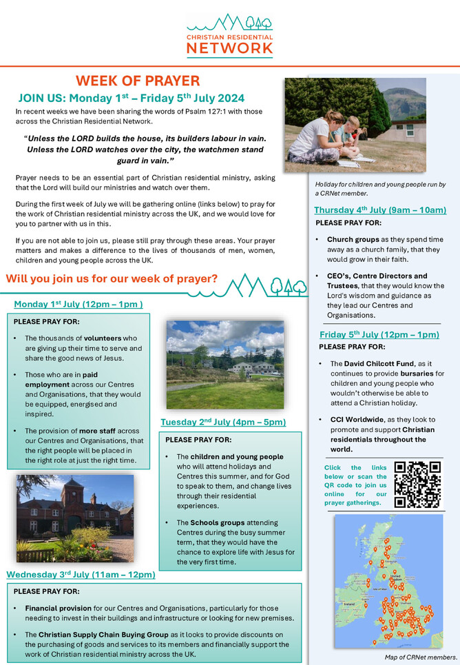 We would love for you to join us in praying for the work of Christian residential ministry across the UK. You can join us online via the links on our website here 👉 Week of Prayer
