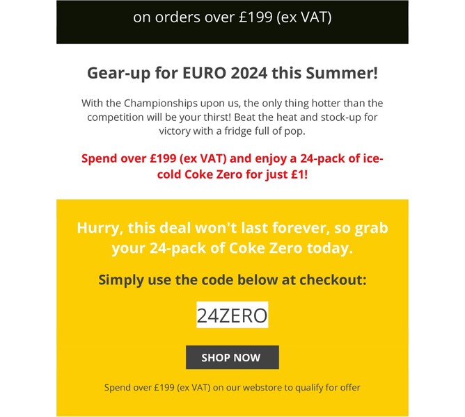 Score a winning deal! 24 Cans of Coke Zero for only £1