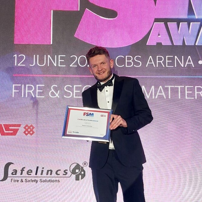 Safelincs were nominated for the ESG Company of the Year Award, for companies with a turnover exceeding £10 million. Amongst tough competition we were extremely proud to receive recognition from Fire Safety Matters and were highly commended in this category. In addition, we sponsored and our MD Stuart Baxter had the privilege to present the award to the winners of the Fire Safety Innovation of the Year Award.👏🏼