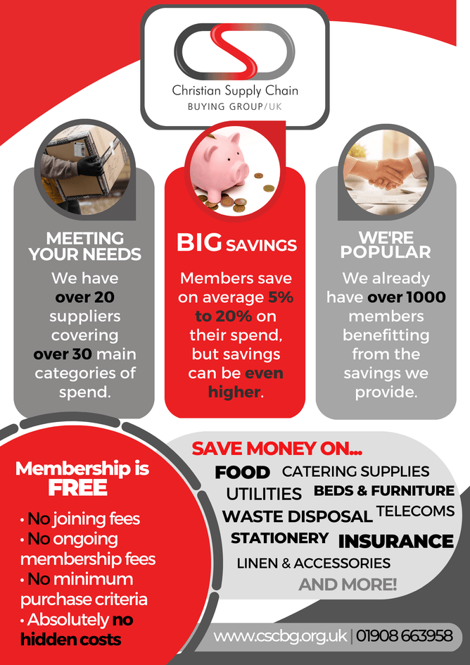 As a member of the CSC Buying Group our mission is to help you reduce your overhead costs so you can release funds for your God given ministry. We can offer you savings across our entire portfolio of suppliers so if you have some specific requirements, please contact us and ask us about our procurement audit and report.