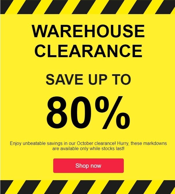 Massive clearance event: up to 80% off!