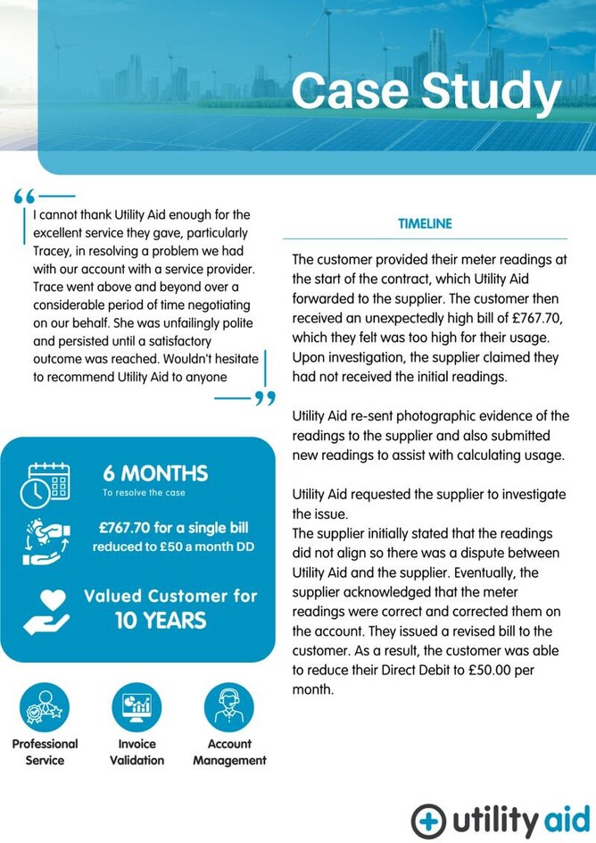 When you find yourself overwhelmed by numerous options and are searching for that standout choice, consider Utility Aid. This case study highlights what makes us unique: we don’t just sign you to a contract and then disappear until it’s time for renewal. Instead, we are with you every step of the way, providing continuous support through our dedicated bureau team and account management team.