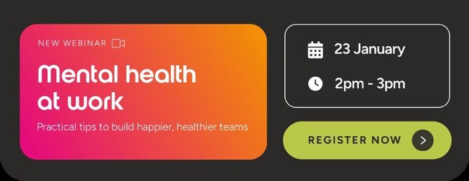 We know that supporting your team’s mental health is more important than ever. That’s why we’d love for you to join us at our upcoming webinar, Mental health at work: Practical tips to build happier, healthier teams, on 23rd January from 2-3 PM.