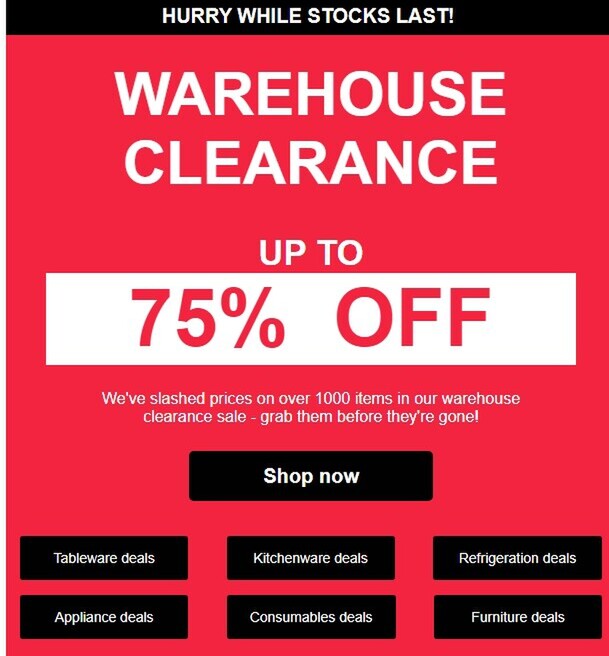 Must-see Clearance deals! Up to 75% off at NISBETS