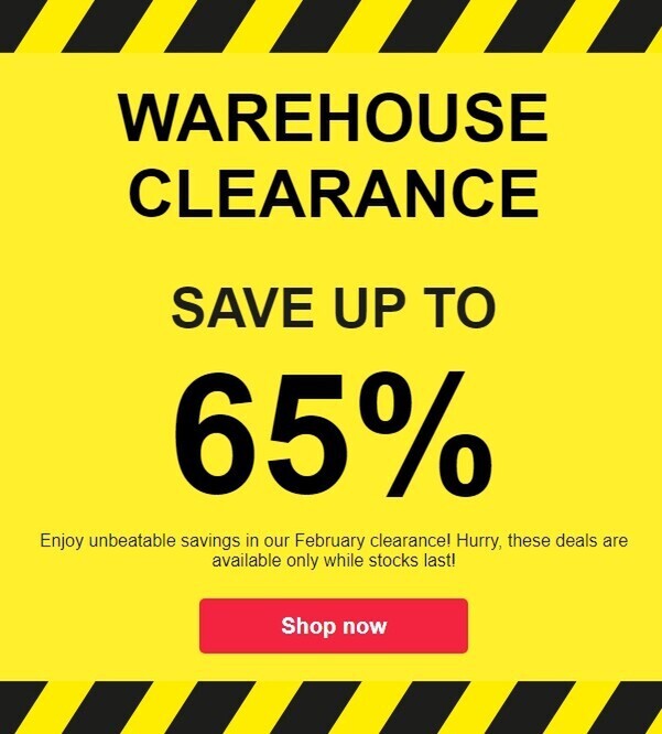 CLEARANCE: don't miss up to 65% off!