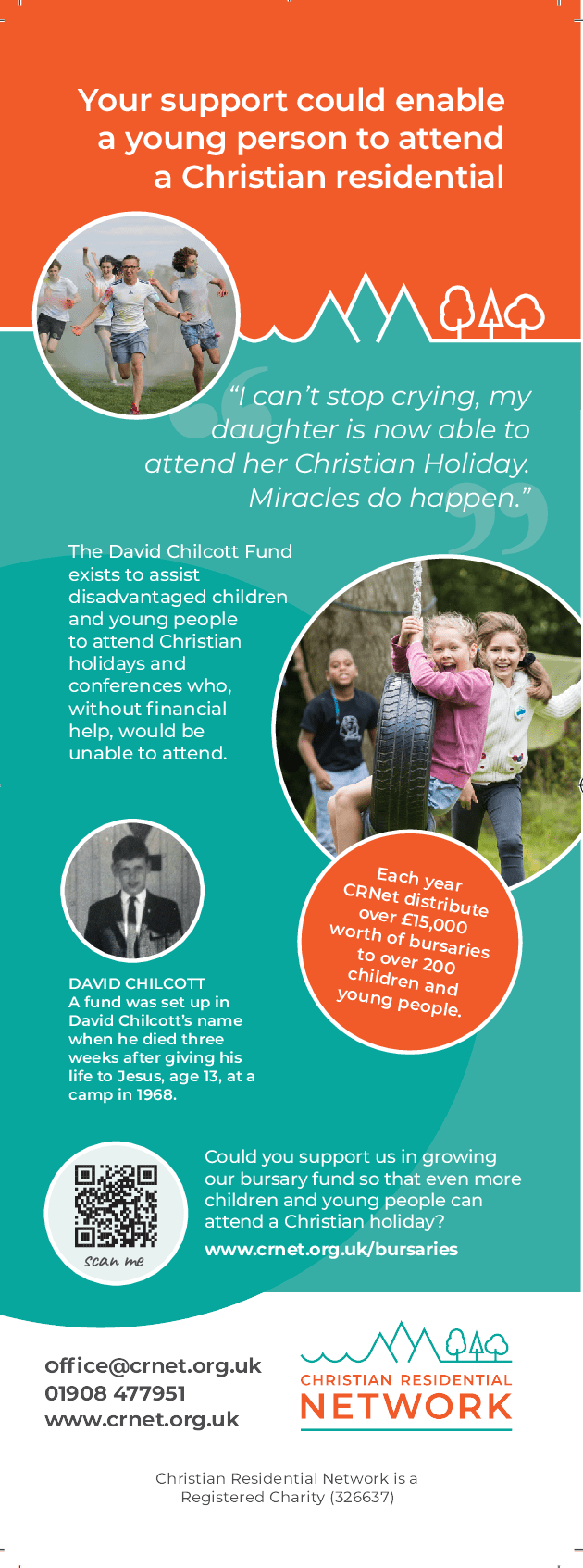Please consider Nominating Christian Residential Network a charity that promotes and supports Christian Residential Ministry across the UK including the administartion of the David Chilcott bursary fund for a £1000 award.