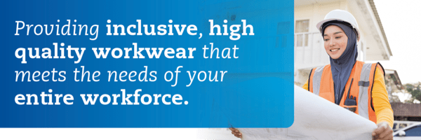 We believe that workwear should empower every member of your workforce. Too often, essential options like maternity wear, religious attire or properly fitted garments are overlooked, leaving employees feeling undervalued, uncomfortable or even unsafe.