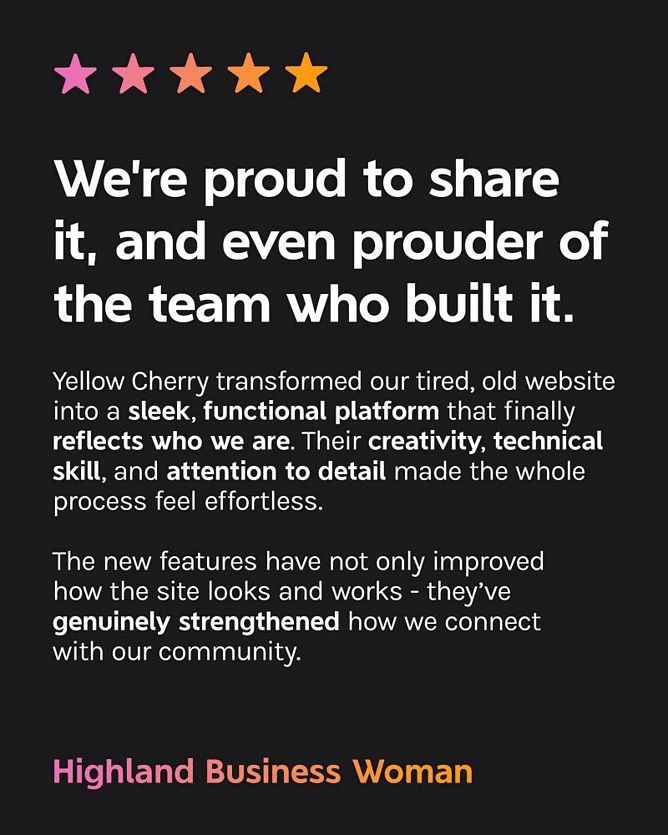 The following is feedback, Yellowcherry received about being fantastic partners throughout a website journey. 💛 Your trust, insights, and collaboration make all the difference, and we’re thrilled to help bring your vision to life.