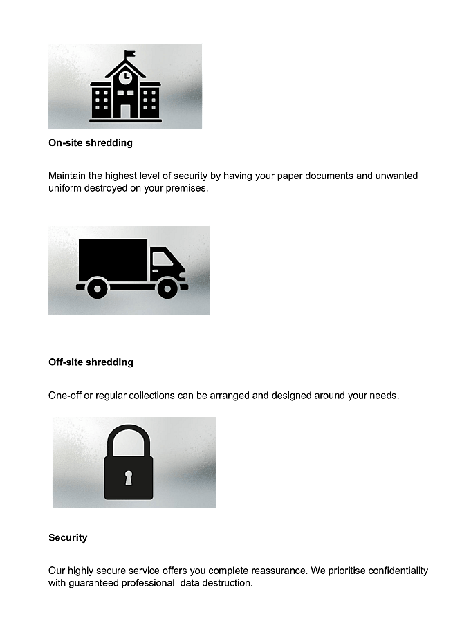 We can provide on-site or off-site confidential shredding. Whether you need a one off collection or a regular pick up, we can help!