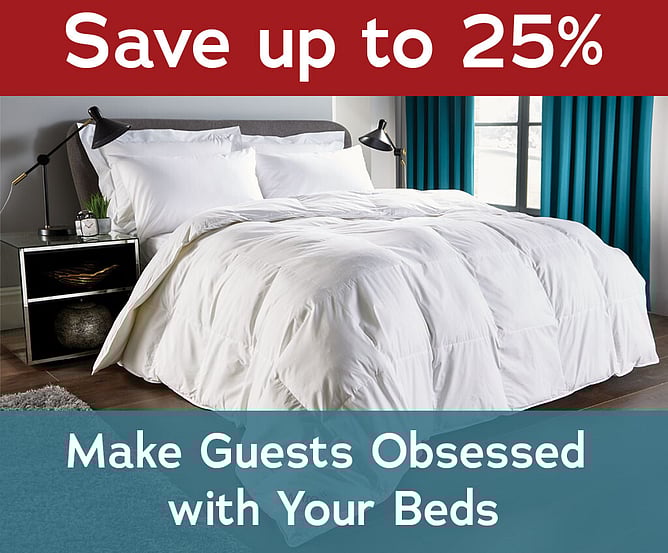 Turn every stay into an unforgettable experience. Enjoy up to 25% off premium duvets—luxuriously soft fills and breathable fabrics designed so guests sleep better, stay longer, and never want to leave. Please click on the image above for the full details of this offer.