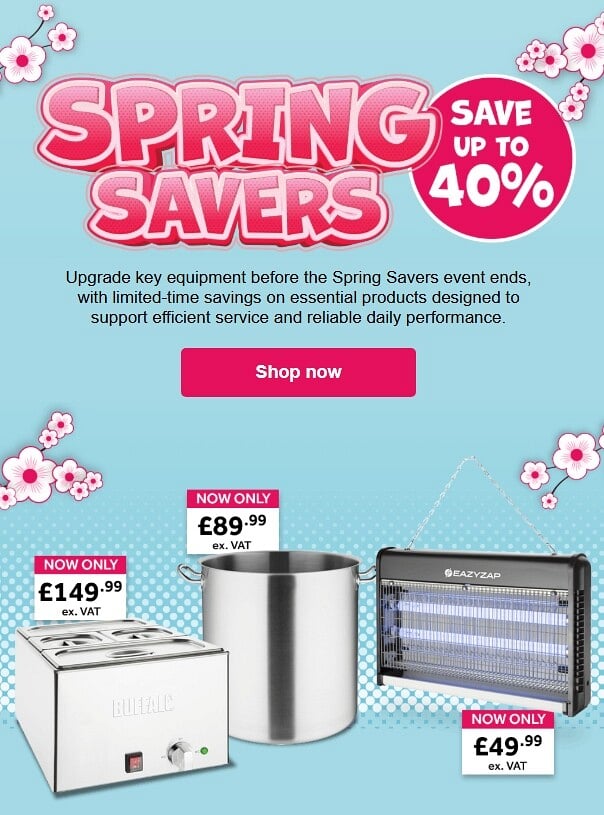 20% discount on most items (excluding basic range, large equipment, and existing offers)