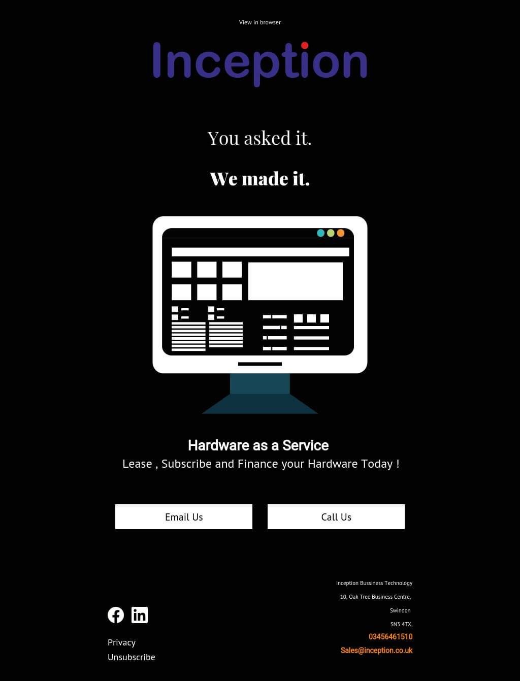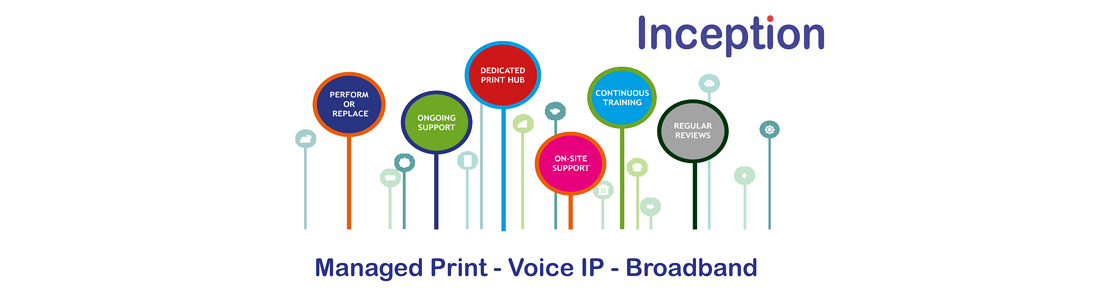 Inception offers flexible options with a 5 – star commitment for all your IT, and print and copier requirements. As well as offering these award winning solutions, Inception can also offer specific managed document solutions money-saving initiatives along with voice IP and Broadband options.